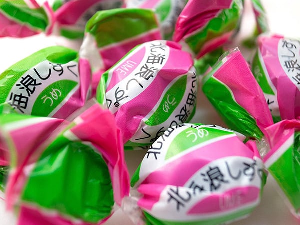 原材料名:水飴、砂糖、でん粉(小麦を含む)、昆布(北海道産)、梅肉、食塩、オブラート(でん粉、レシチン、大豆由来)酸味料、増粘剤(ペクチン)、香料